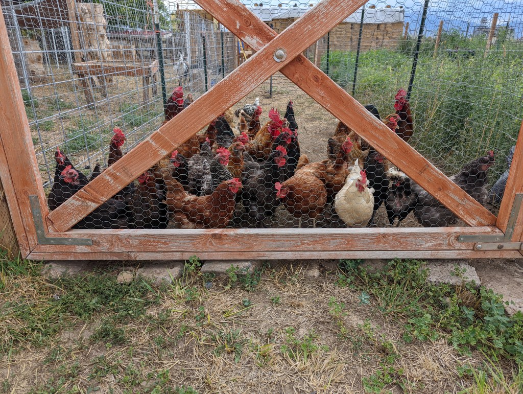 We have a mixed flock of almost 50 laying chickens. We sell eggs to a handful of loyal clients who have been buying from us for almost 3 years now. We have 3 roosters.