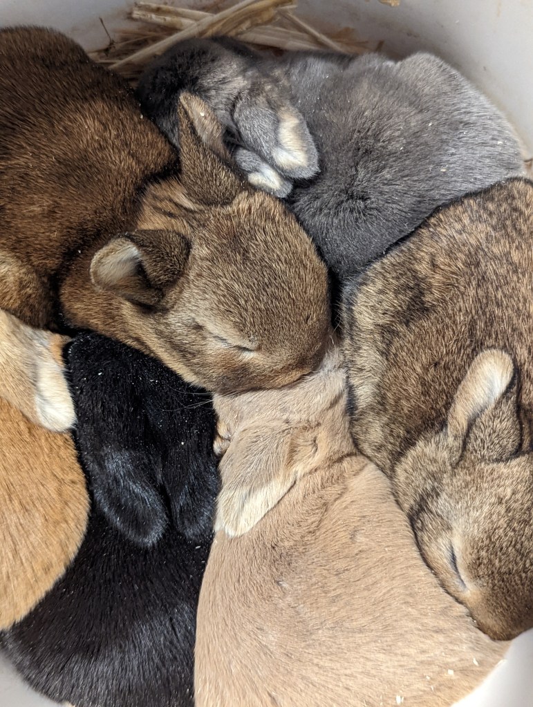We have three Rabbits. They are a New Zealand Rex mix. We purchased them for breeding. This spring we had a litter of 13 kits and Sold them for both Meat and pets.